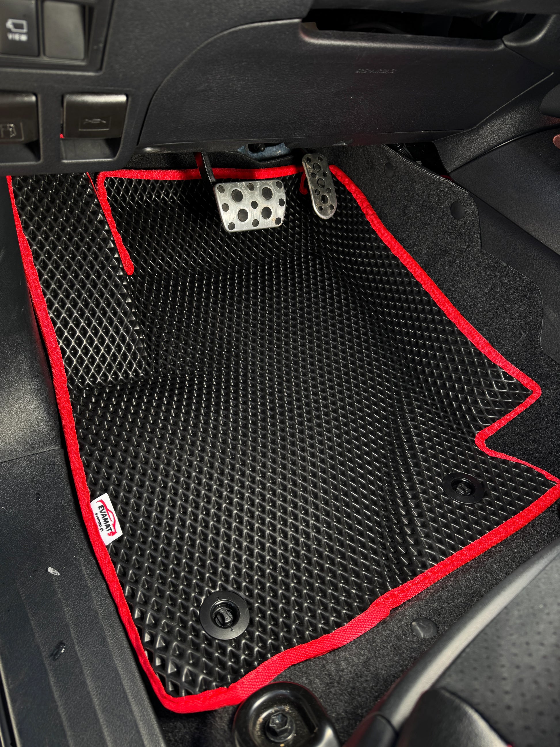 Dywaniki EVAMATS są wyposażone w dedykowany system mocowań, który zapobiega ich przesuwaniu się.