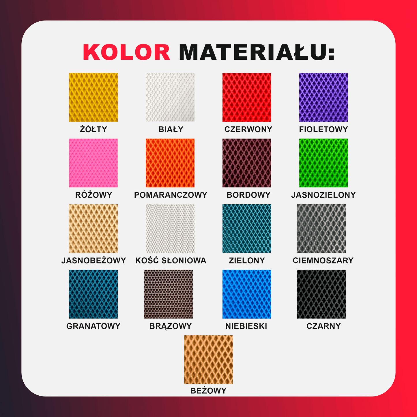 *Dywanik POGLĄDOWY dla wyboru koloru